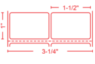 3" core, 2 labels across, 10800 labels per roll, 4 rolls per case, 1.5" x 1"